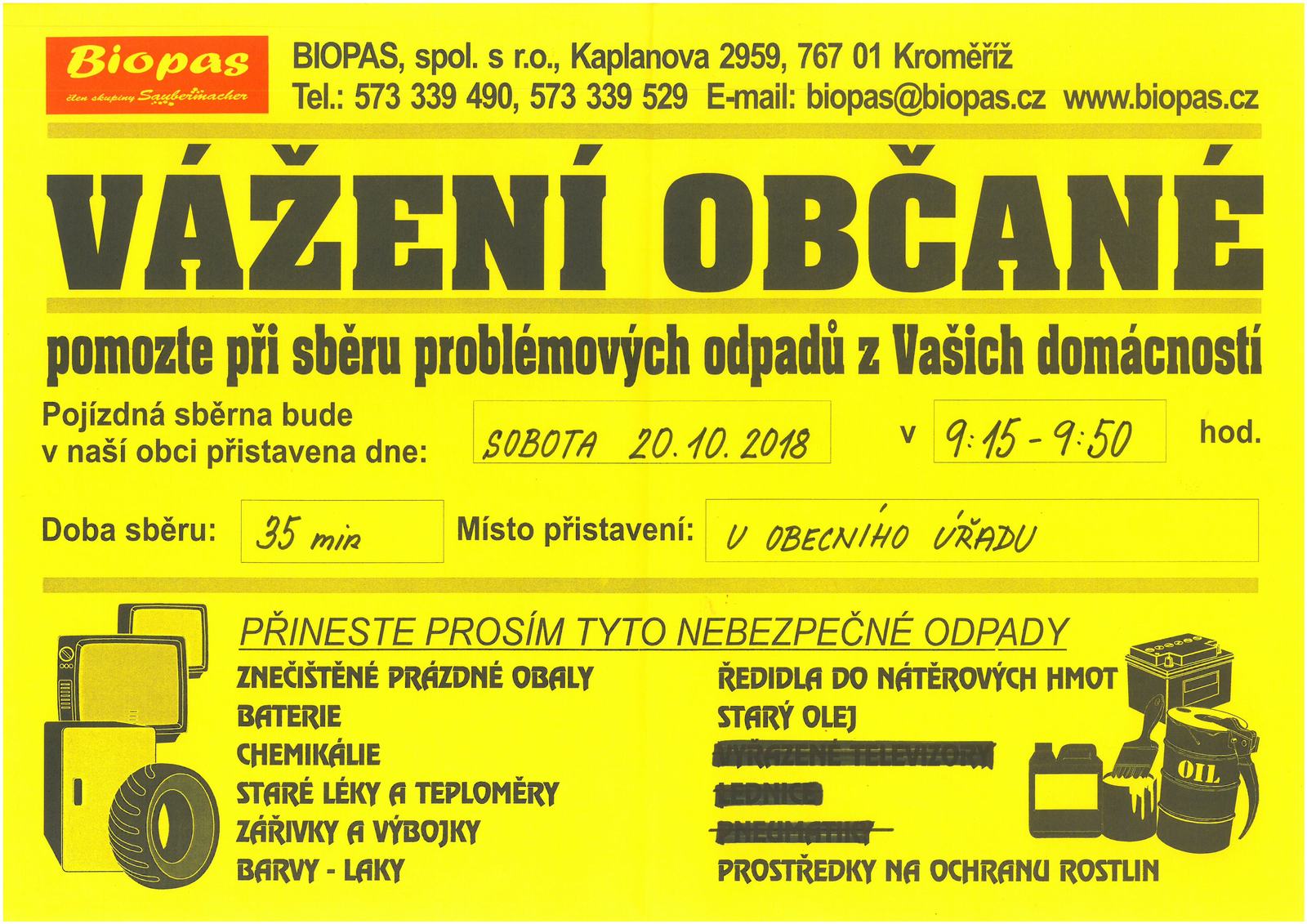 Úvod > Život v obci > Aktuálně > Sběr nebezpečného odpadu